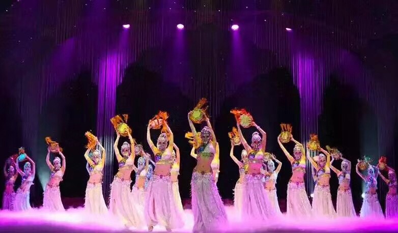 舞者们手拿金色铃鼓,身着一席白裙,透明、纯洁。